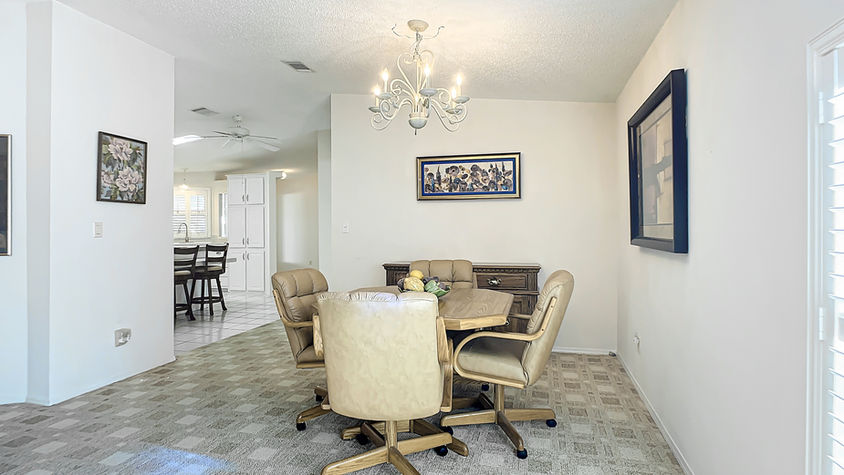 This 2-bedroom, 2-bath 2001 Jacobson WATERFRONT home features 2 large bedrooms, with spacious walk-in closets, secondary bedroom with jack-n-jill bathroom, oversized laundry room for your washer, dryer and freezer, kitchen has eat-at-island and pantry, tons of cabinets, full house newer windows and tape and textured walls. There is a 10' x 24' Florida room, overlooking a pond. House has a 2-car garage with golf cart parking, plus an additional 20' x 40' carport for additional parking.