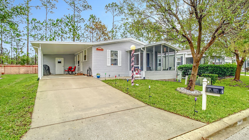 This 2-bedroom, 2-bath Homes if Merit, has 1,120 square feet of living space. It is located on a beautifully landscaped lot. Home features large cathedral ceiling living room and dining room, with newer all-white kitchen appliances. It has laminate flooring with white carpeting in bedrooms. Recently painted. The home has a nice size screened patio. This home is located in Aberdeen, a luxury 55+ gated community in Ormond Beach....minutes from Daytona Beach and Atlantic Ocean beaches. HOA is currently $953.60 per month, which includes gated 24 hour security, large clus house and swimming pool with hot tub, full lawn service (Including irrigation) and so much more. This home is move-in ready.