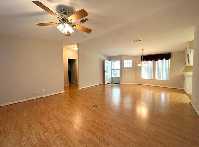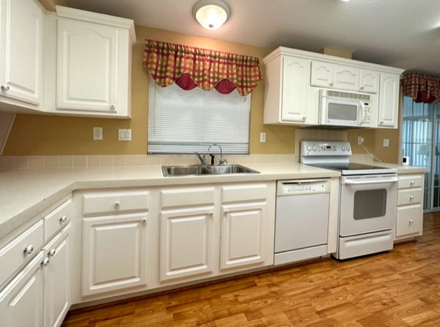 Step inside this open concept plan offering beautiful flooring in the communal area. The kitchen has lots of cabinets in the extremely popular white and features a deep double sink, stove, refrigerator, dishwasher, and garbage disposal along with an icemaker. Enjoy your morning or a quick lunch in the eat-in kitchen area that opens onto the Florida room. The washer and dryer are in the kitchen area for convenience. Gorgeous Florida room with a concrete floor with custom blinds, new windows and sliding door.