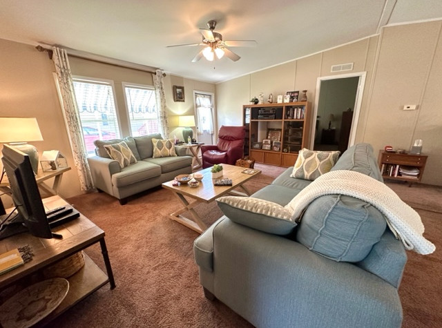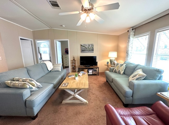 Lovely 3/2 home in Golden Pond Village, a 55+ community located in the SE side of Ocala FL near Belleview and The Villages. This park is tucked away in a beautiful area of rolling hills in a country setting. It is just a short drive to the grocery, pharmacy, restaurants and all your shopping needs. Low lot rent here $385 includes water, sewer and trash also pet friendly 2 @ 20 lbs. This 2009 home by Fleetwood has a long carport and a new 8 x 12 shed at the end for extra storage. Nice split floor plan with vaulted ceilings and indoor laundry with newer washer and dryer. Open kitchen with bar height counter top for extra seating that opens into the spacious dining room. Lots of windows for natural light. Master bedroom has plenty of room to accommodate a king size bedroom set with a walk -in closet. Master bathroom with a step in shower. The other 2 bedrooms will accommodate a queen bedroom set with spacious closet space. Whether you're looking for winter home or full time residence, this is the one for you. This home “sells furnished “ items in shed are available to purchase. Call us today to make an appointment to view this lovely home.