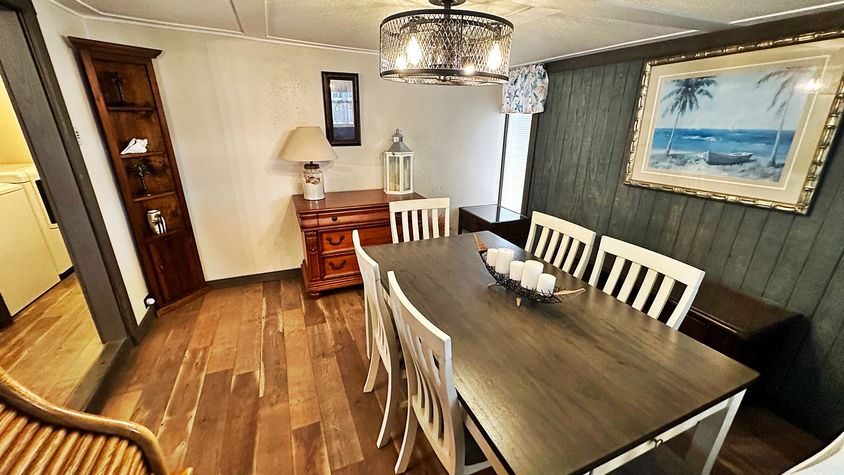 currently used as a dining room. This lovely home is very tastefully designed and features a large front lanai, luxury vinyl planked flooring, new cabinets/countertop, custom tile backsplash, inside laundry and so much designer details.