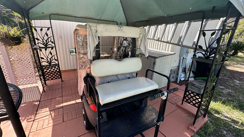 This is a very special home starting with the pie shaped lot that gives you a large backyard with unique golf cart parking and secluded sun bathing areas. (4 seat Club Car included in sale)