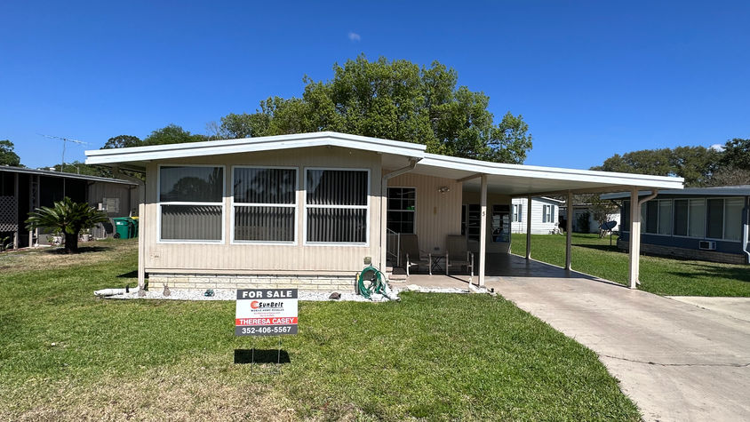 TURN KEY HOME ! This lovely home has all you need, so pack your toothbrush and clothes and move right in. Featuring laminate and vinyl flooring, it comes fully furnished. Most all you see will sell with the home. The carport offers extra parking spots to fit up to 3 vehicles. Enjoy the outdoors with several porches for the beautiful Florida weather. You will love this home! The park is a great community that offers all kinds of amenities, beautiful pool , spa tub, pool table and many activities. Located near shopping and easy access to the surrounding areas this community is very convenient. The lot rent includes water, sewer and trash. Come enjoy living in the popular resort park of Hazelton Village.