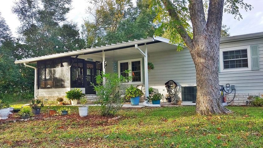 A large, bright kitchen and spacious living room greet you as you enter the front covered entry. Feeling homesick for your home up north? Turn on the fireplace! This home features two bedrooms, an updated front bath and an extra-large en-suite bathroom as well. Spacious Florida room can host a dozen people or give you a quiet place to enjoy the peaceful setting.