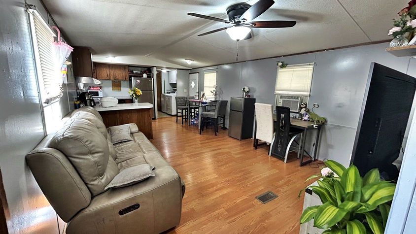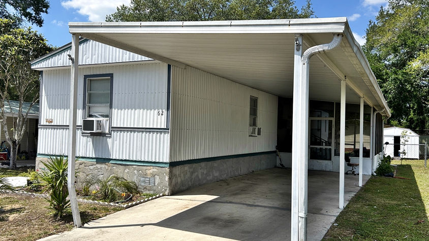 MOVE IN READY! Nestled in a family community located in the heart of the Ocala Horse region. Beautiful 2 Bedroom 2 Bath Mobile Home. Golden Hills Mobile Home Park offers, clubhouse, pool, boat & RV storage, social activities, laundry and pet friendly up to 40lbs. The low lot of $516.00. Fleetwood Mobile Home with 2 bedrooms, 2 full bathrooms, 12 x 23 screened porch with 12 x 38 carport, 2 6 x 10 sheds with Fenced in backyard. Double car parking, Comes with 3 A/C Window Units and Metal Roof. 790+ sq ft. of Living Space. Washer and Dryer with the kitchen appliance all stay in the home. This home will not last! Call today for your showing.