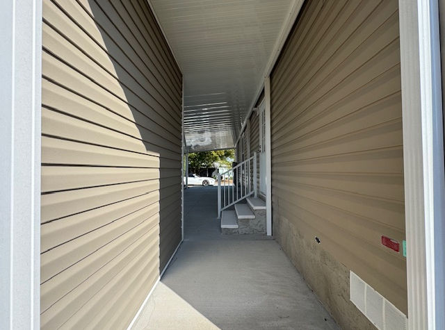 Introducing our brand-new Nobility Mobile Home, featuring two bedrooms and two bathrooms, a carport and shed, and a spacious kitchen with plenty of counter space, Whirlpool stainless steel appliances, and a kitchen island. The open hallway leads to a hall bathroom with a high vanity, linen closet, and tub/shower combo.